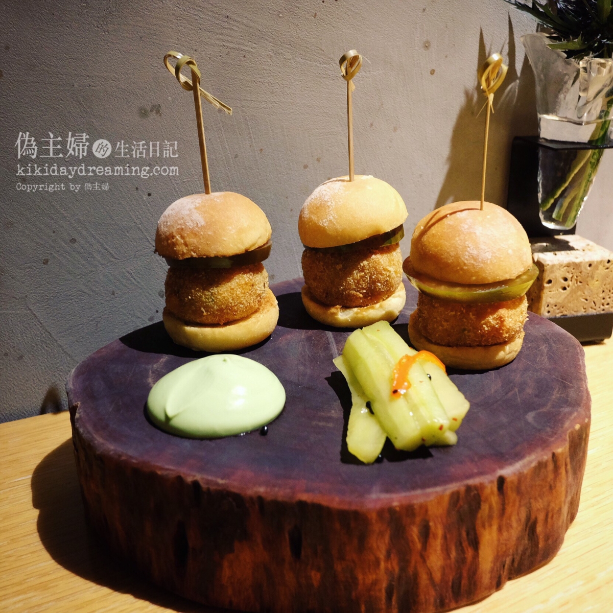 第一道餐前小吃的餐牌沒有的迷你蟹餅漢堡,蟹肉是用手釣的蟹而不是大量拖網獲得的,麵包好酥軟好味道