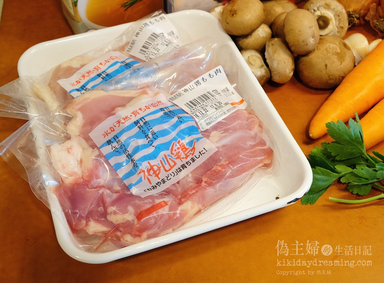這次用的是Oisix的皇牌德島神山雞(產品介紹連結),空運直送解凍後就可以使用。果然是皇牌,雞的肉質很滑很新鮮,味道也相當鮮味,是很優質的雞肉