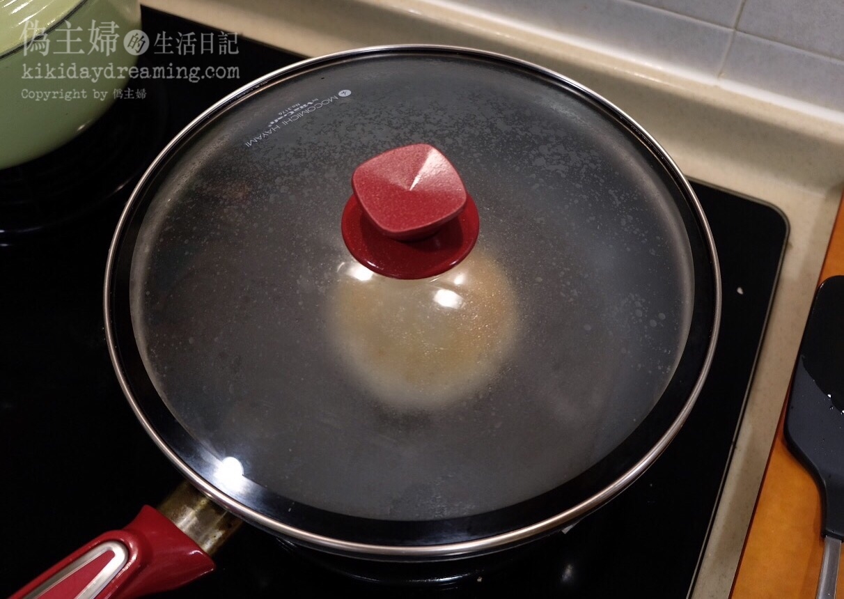 9. 然後蓋上蓋子,再以中小火煎兩至三分鐘就可以,中途可以將漢堡轉一次面令顏色更漂亮