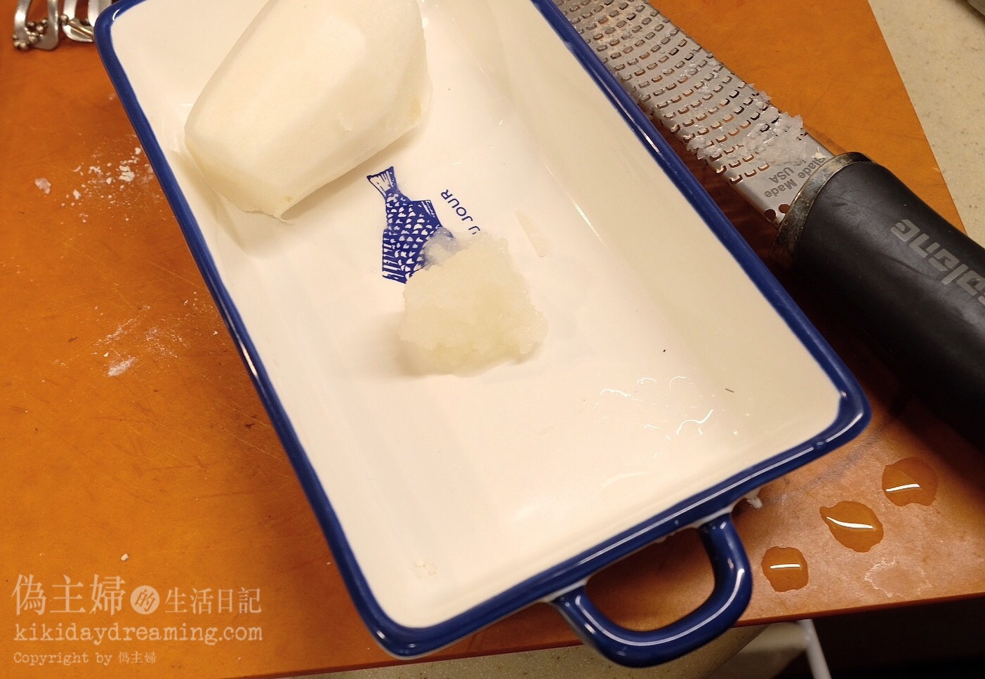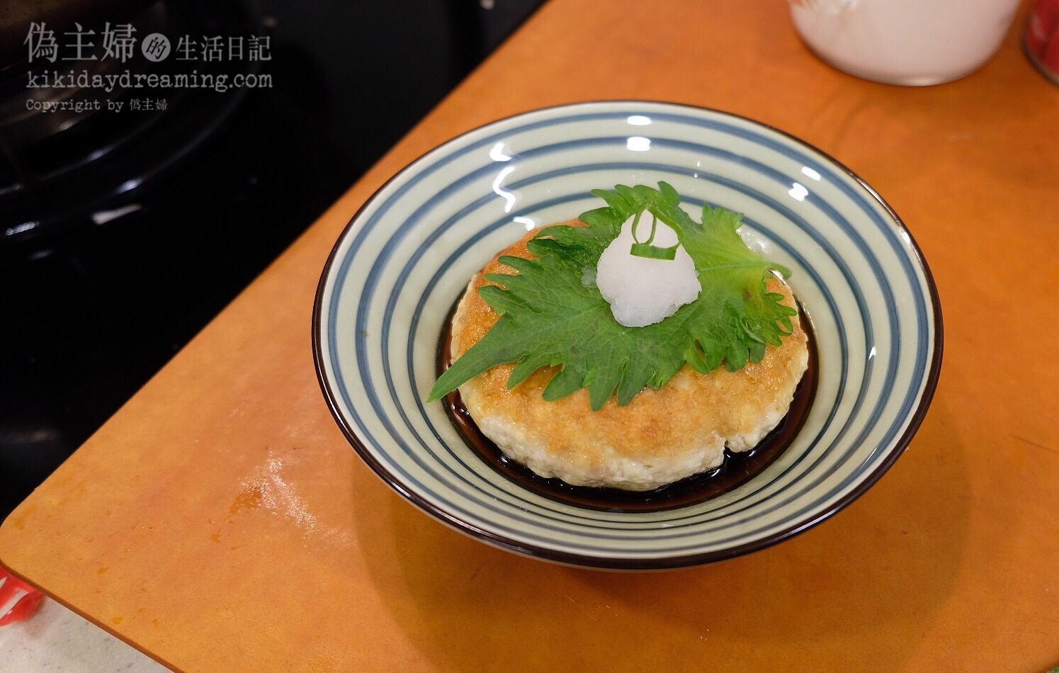 10. 然後裝盤,倒上醬汁,放上大葉和蘿蔔泥