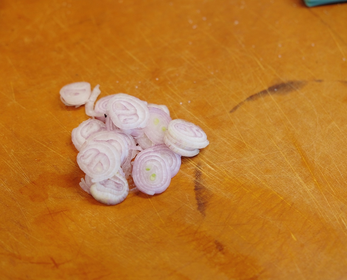9. 肉休息期間來做醬汁,先切好乾蔥