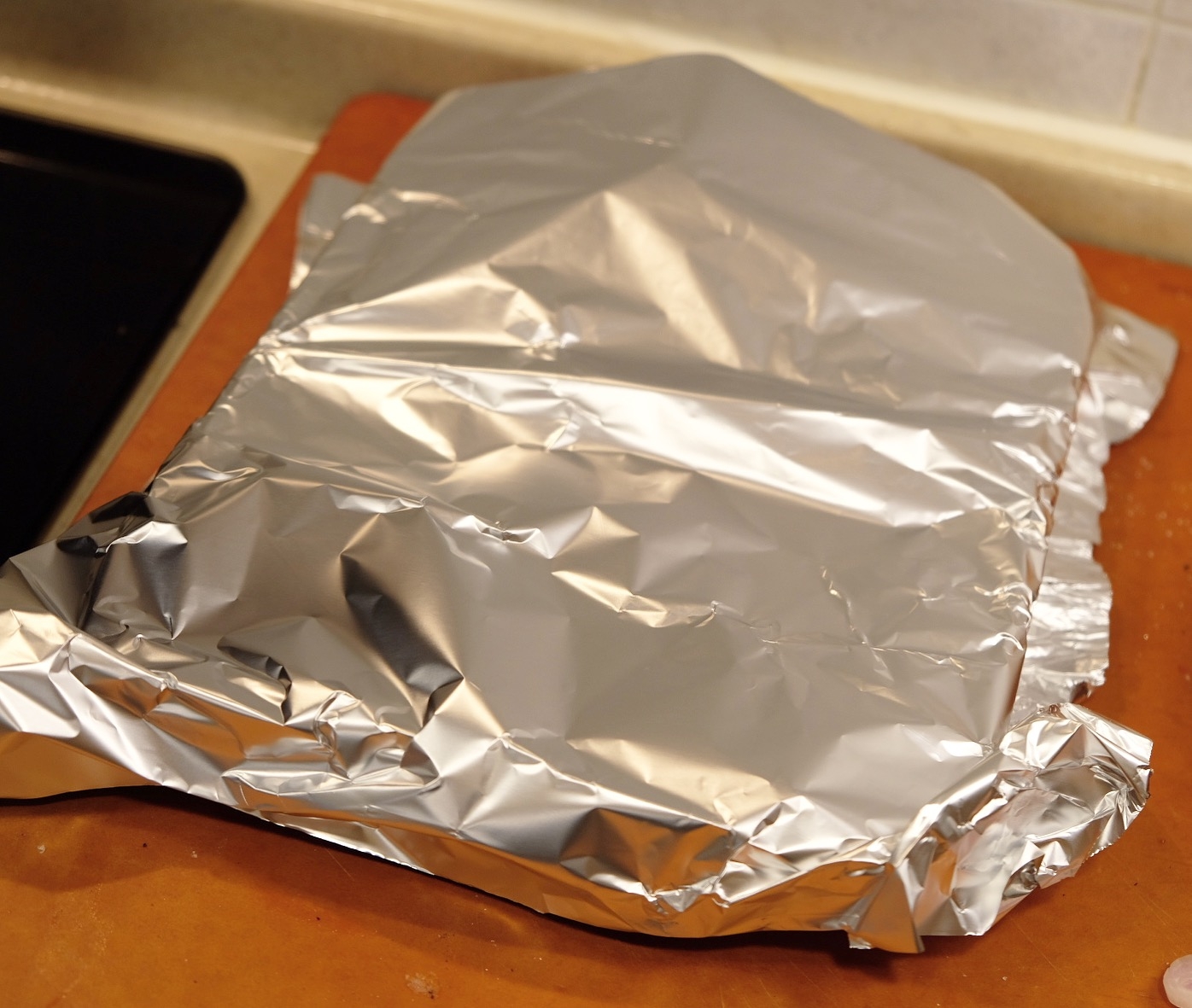 8. 烤好後先把豬扒取出用錫紙包好休息一下
