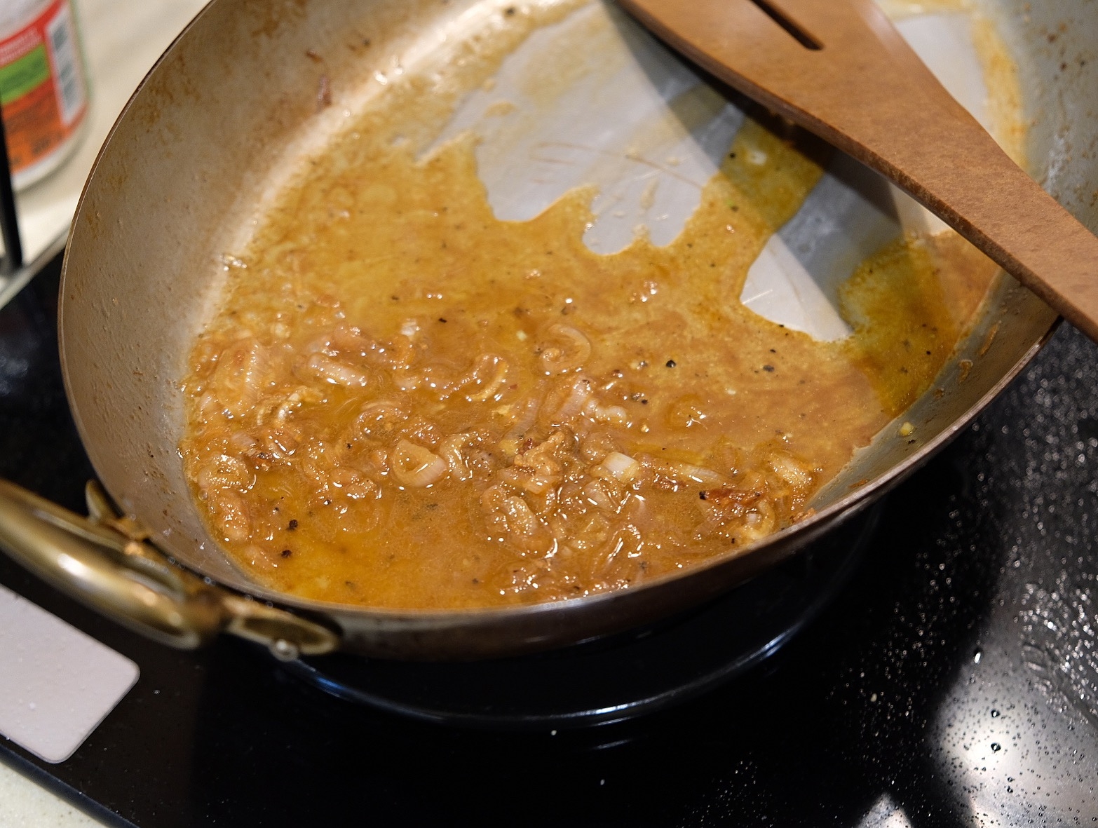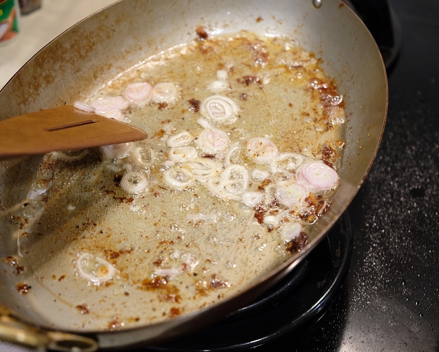 10. 烤豬扒原鍋隔一下油繼續用,先把乾蔥炒香炒軟