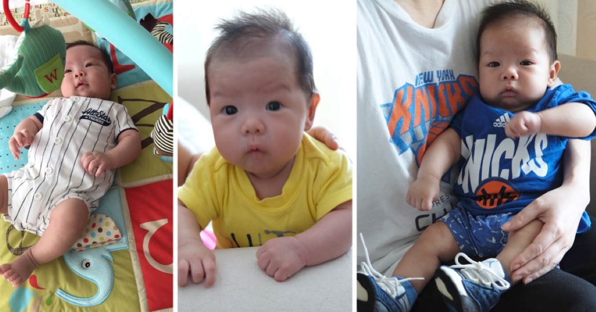 有一個晚上在餵完奶後,美國胃把寶寶抱到房間換尿片,中途聽到兩父子在嘰嘰哩哩聊天,原來某胃在給兒子拍照片,還PO了臉書