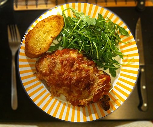 好一陣子沒出場的「美國胃來煮」又來了。其實因為我最近都在煲看後宮劇《甄嬛傳》的關係,這一個多星期的晚餐都是美國胃煮,被晾在一旁冷落了沒人理還要張羅晚餐,真是可憐。所以要在這裡把他的大作貼出來,讚一讚才是道理,呵呵!這一個多星期的煮夫生涯代表作,就是這個很美國家常風的芝士烤雞Chicken Parmesan 沒有拍做法呀,因為我在追看《甄嬛傳》分身不暇,哈哈 雞肉浸泡過牛奶,好軟嫩呢,配上烤香了的芝士和蕃茄醬,是一道令人滿足的... 看全文 -