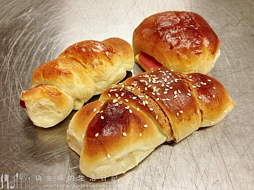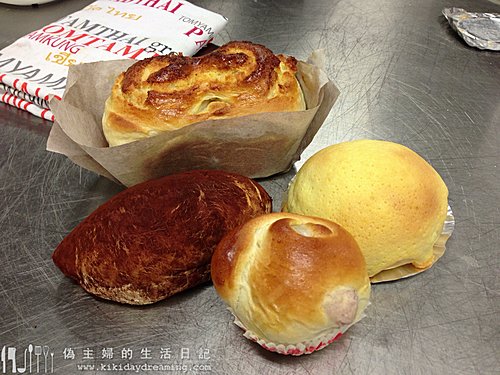 又來報告一下這星期的麵包之路了!(看來之後每星期都會來報告一下,XD)這星期的麵包課,做了兩款「忌廉吉士」餡料的麵包,也做了一條迷你的肉桂南瓜吐司 開始越來越對上手,麵團操作起來也沒之前這麼無從入手,也比較快完成搓麵的過程了 吉士醬烤起來真的好香,出爐了! 看起來像一尾魚,明明是做棍子的形狀呀XD 小圓包大部份由師傅在上面畫花 他幫我和小杯的麵包上寫了「發財」兩字,哈哈 Mrs Bear看到就把她的B字包來參一腳 成品們來... 看全文 -