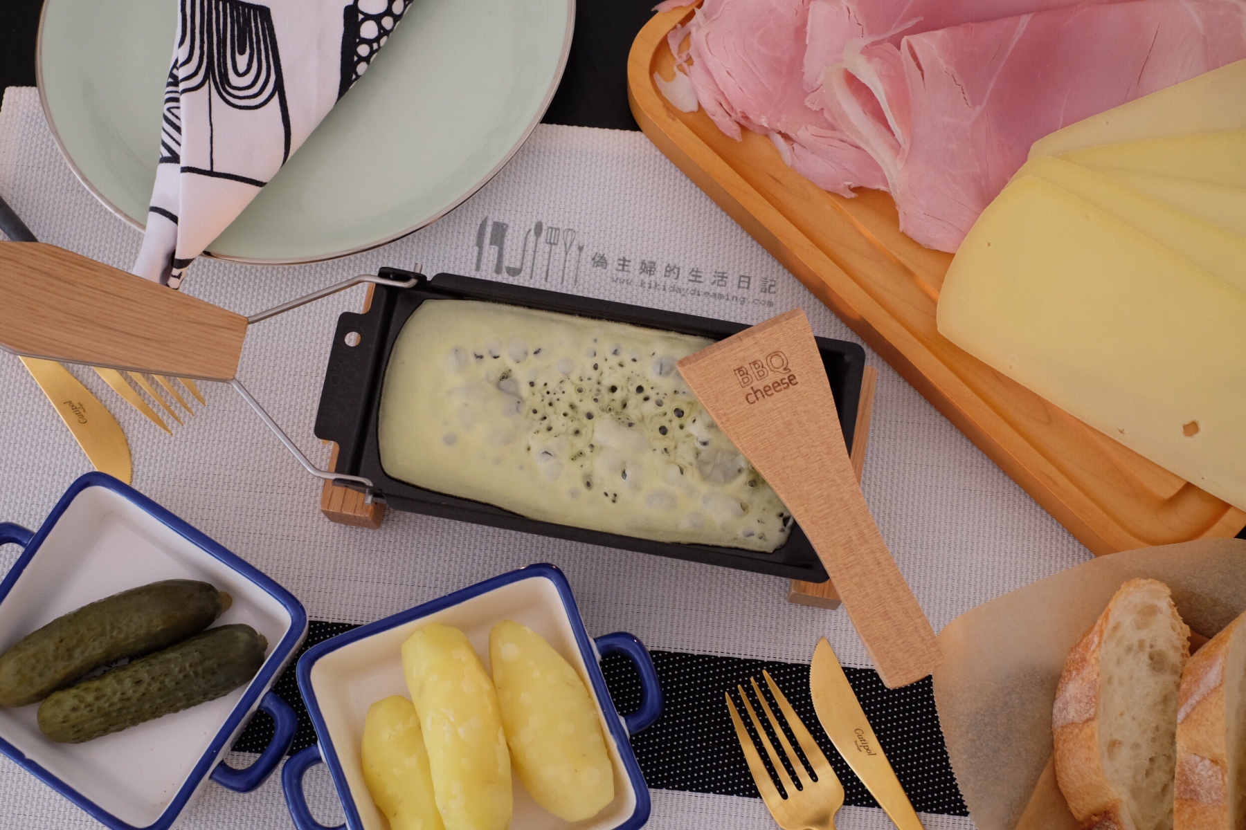 【11月每天一篇大挑戰】之02(詳情按此:【重新出發。由11月開始】) 我和美國胃都很喜歡吃瑞士的Raclette芝士,最傳統的吃法就是將車輪般大的芝士切開,把切面放到火爐邊或特製的熱燈下,因為溶點比較低的關係,表面的芝士很快就會融化,用刀輕輕刮下來就可以吃了,半溶流質的芝士真的超美味又邪惡呀。 不過我們家沒有火爐,而專用的熱燈也太大座了,另外常常在歐洲見到的一款加熱鐵板也不見得小巧。我們一年就只不過... 看全文 -