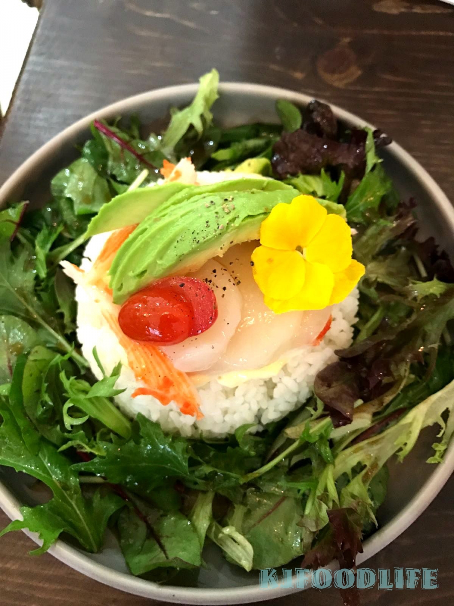 挑戰一次黎個急口令,牛油果蟹棒帶子刺身溫泉蛋飯(108),勁多菜中間包住飯,撈勻個溫泉蛋同牛油果落飯度,入面加左啲沙律醬同少少咸味調味,撈埋一齊好好味呀。