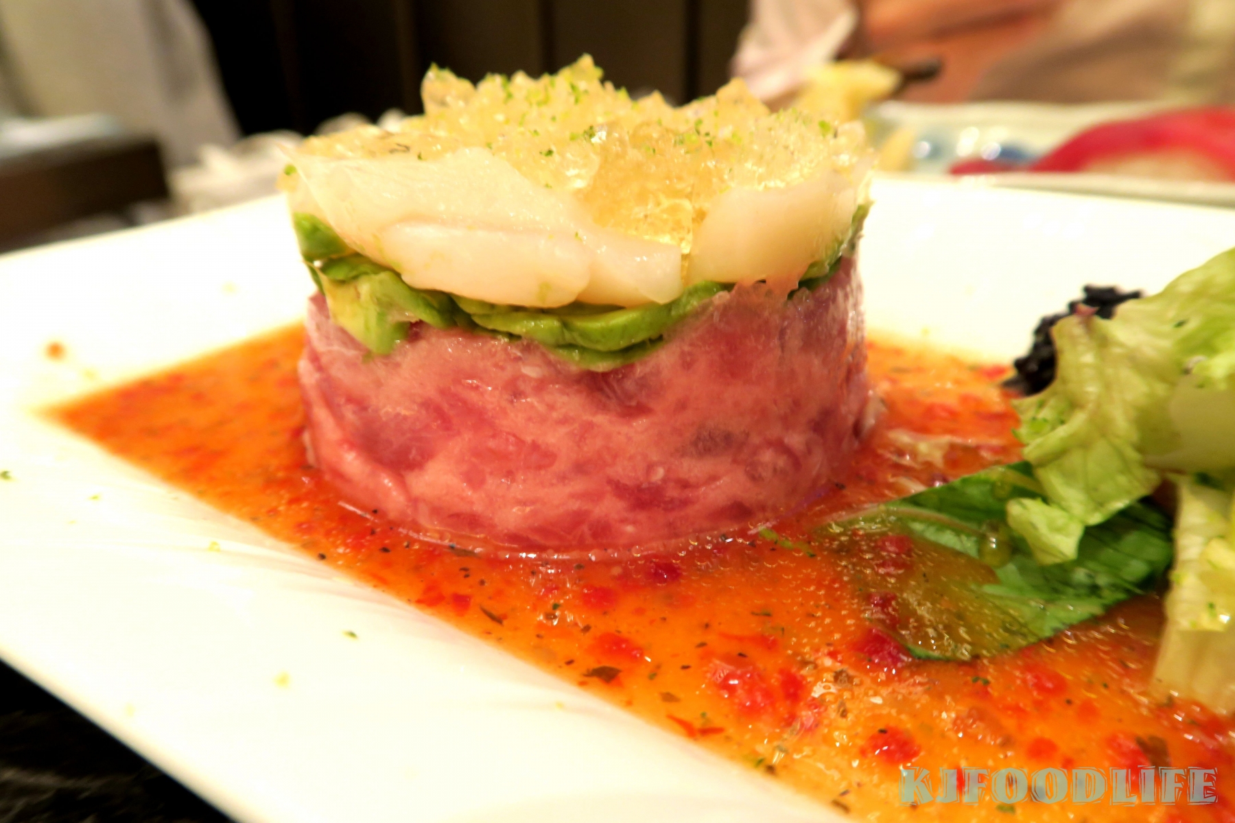 厚岸產帆立貝吞拿魚他他($68),一黎到就見到勁厚既吞拿魚他他,面頭有梅酒柚子啫喱,再夾上牛油果同香草蕃茄汁,成個感覺好清新。