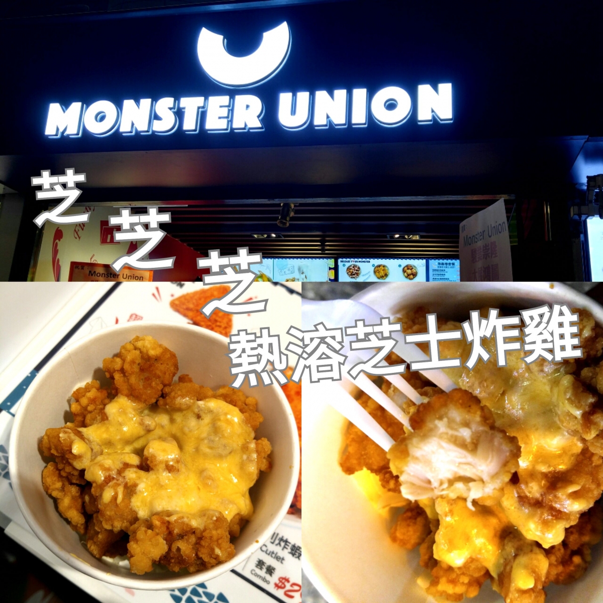 放工肚餓見到尖東有新店開左 緊係即醫下肚先 見到好多人買熱飯卷 個包裝好靚不過都四五十蚊一卷 先試個熱溶芝士炸雞(套餐$38) 芝士份量唔算超多 而且勁快凝固左得面頭有芝士 如果你有食過KFC既芝士醬炸雞 陣味係完全一樣 不過雞粒滑啲嫩啲無咩大分別 同埋炸雞應該唔係即整 食落完全唔熱 店名: Monster Union 地址: 尖沙咀東科學館道14號新文華中心61... 看全文 -