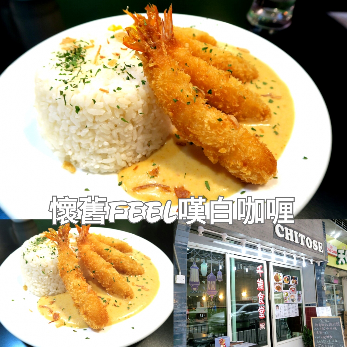 舊區多美食 今次去小巷覓食 走左入千歲千歲千千歲餐廳 裝修都幾舊式茶餐廳Feel 我一心係為左個韓式芝士汁意粉黎架 點知全系列停售呀 唯有揀個白咖喱炸蝦飯($60) 咖喱無辣度反而甜香味較重 炸蝦即叫即整唔太大隻 但熱辣辣又炸到外層超脆 杯餐飲真係超級大 雖然無茶餐廳咁正 都總算過得去 店名: Chitose 地址: 長沙灣昌華街23號地下16號舖 #kjfoodli... 看全文
