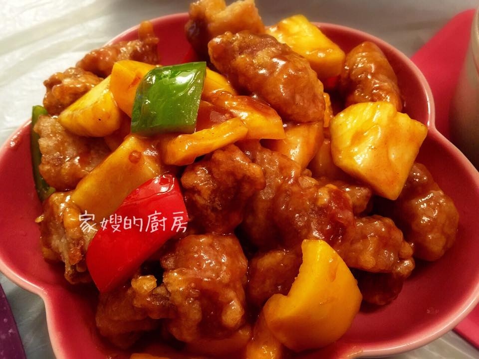 脆皮咕嚕肉 用埋新鮮菠蘿,很好下飯呢 脆皮咕嚕肉: 脢頭肉 (我買了$30第一刀 )切小舊 三色甜椒各 1/2 隻 、 新鮮菠蘿片半個全切片 豬肉切件用醃料醃一會 (雞汁 2 茶 匙 、 蛋黃 1隻 ) 糖醋汁料 : 水 300 毫 升 、 鹽 1/2 茶 匙 、 片 糖 3 片+/-、 米醋 200 毫 升 、 山楂餅 10塊+/- 、 茄 汁 200 毫 升 、 OK 汁 3 湯匙、喼 汁 1 湯 匙 以上材料混合,煮溶備用,... 看全文 -