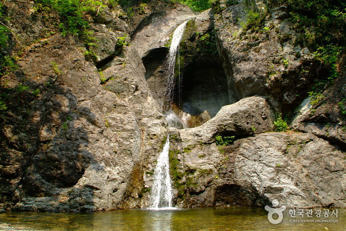 周王山的鶴巢台正下方就是3個瀑布中的第1號瀑布,從石頭縫隙中噴湧出清澈的溪水,其上頭又有仙女湯和九龍沼,再往上1公里,就是第2號瀑布。往左500公尺處緊接的為雄壯巨大的2階式第3號瀑布。這裡可以說是周王山國立公園的核心地帶。