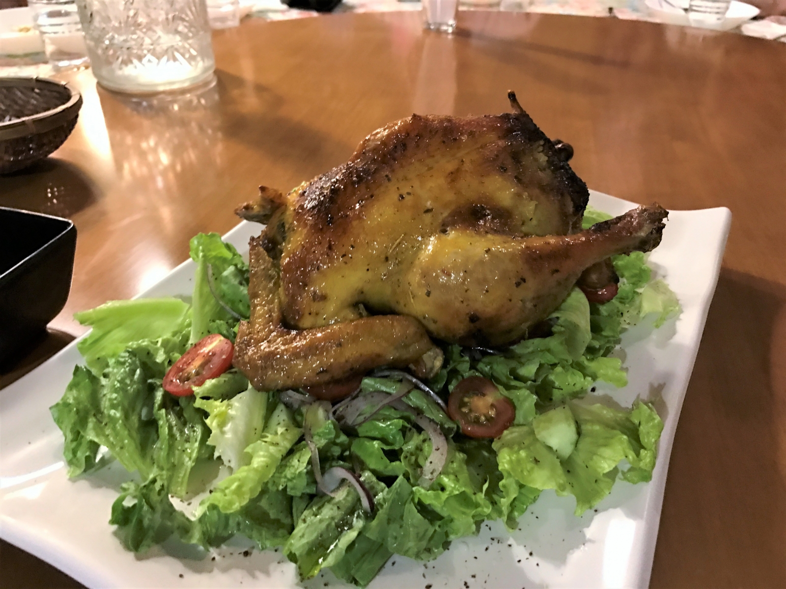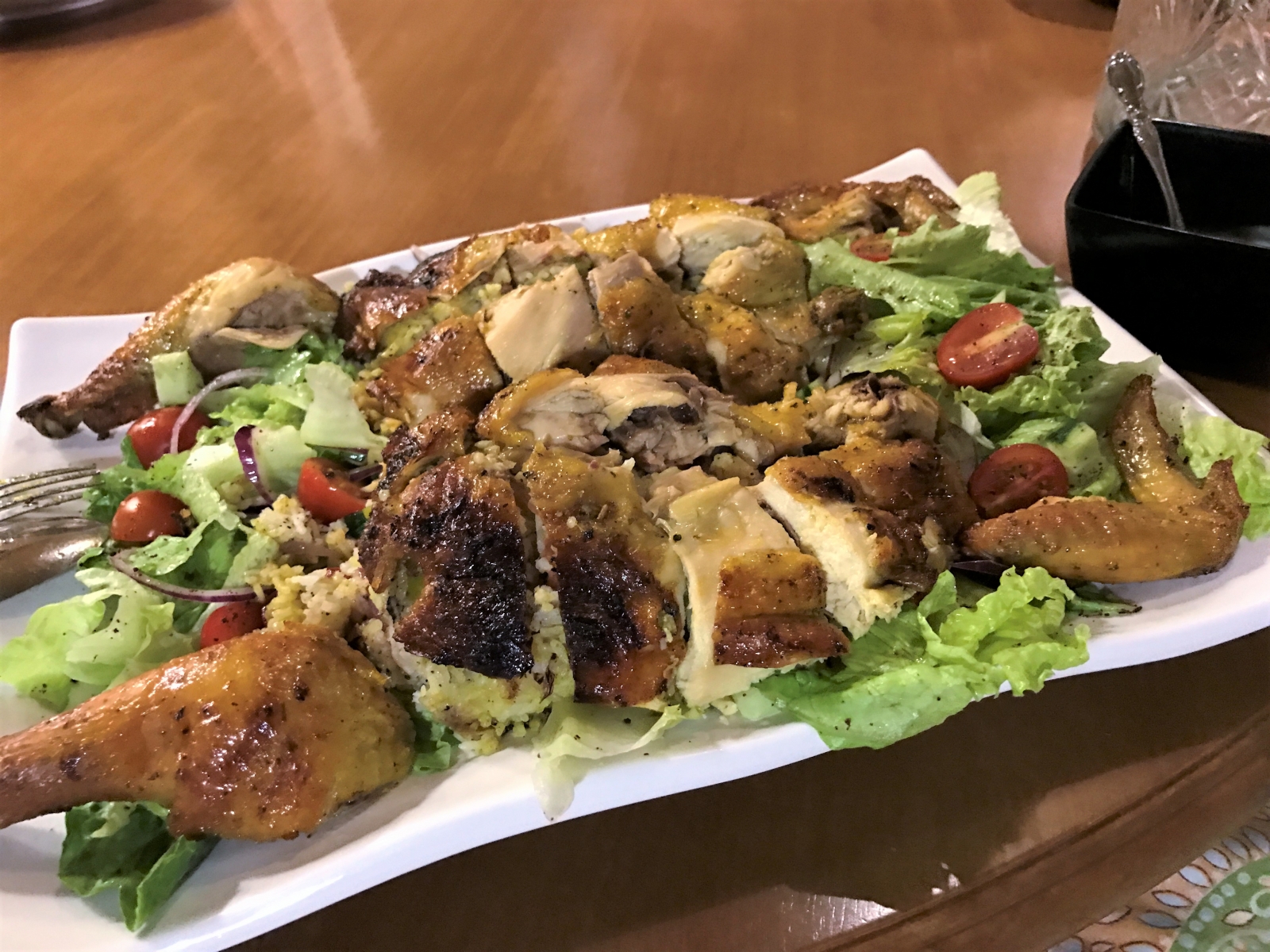紅飯以香料煮過,混入番茄、紅洋蔥和紅燈籠椒等,故稱為紅飯。把紅飯釀入雞腔,吸滿雞肉的精華,令鮮味倍增!