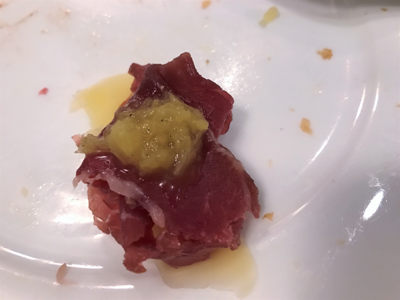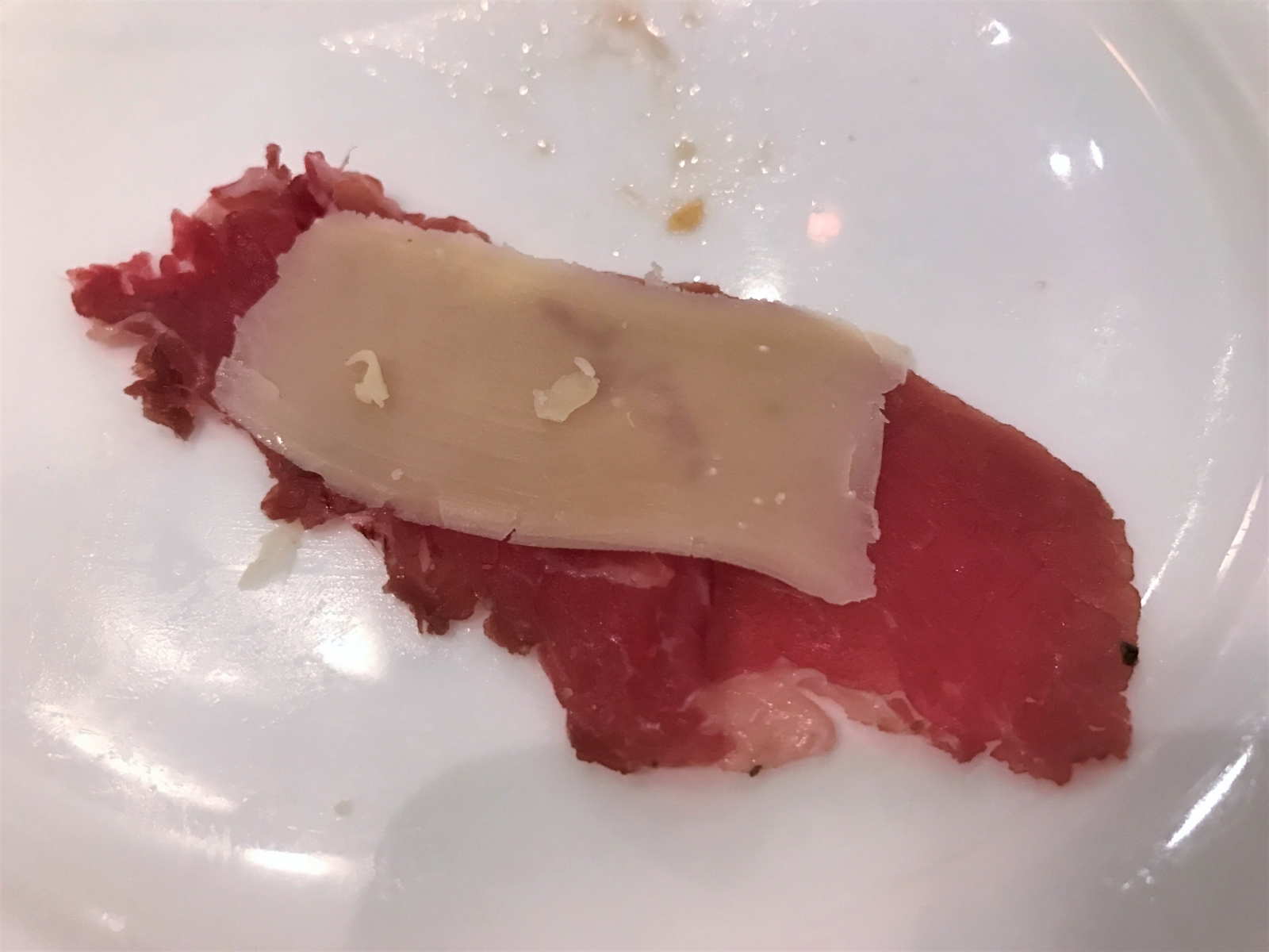 Comte芝士奶味香濃,單吃佐酒已非常精彩!伴以牛肉同吃,又另有一番風味!