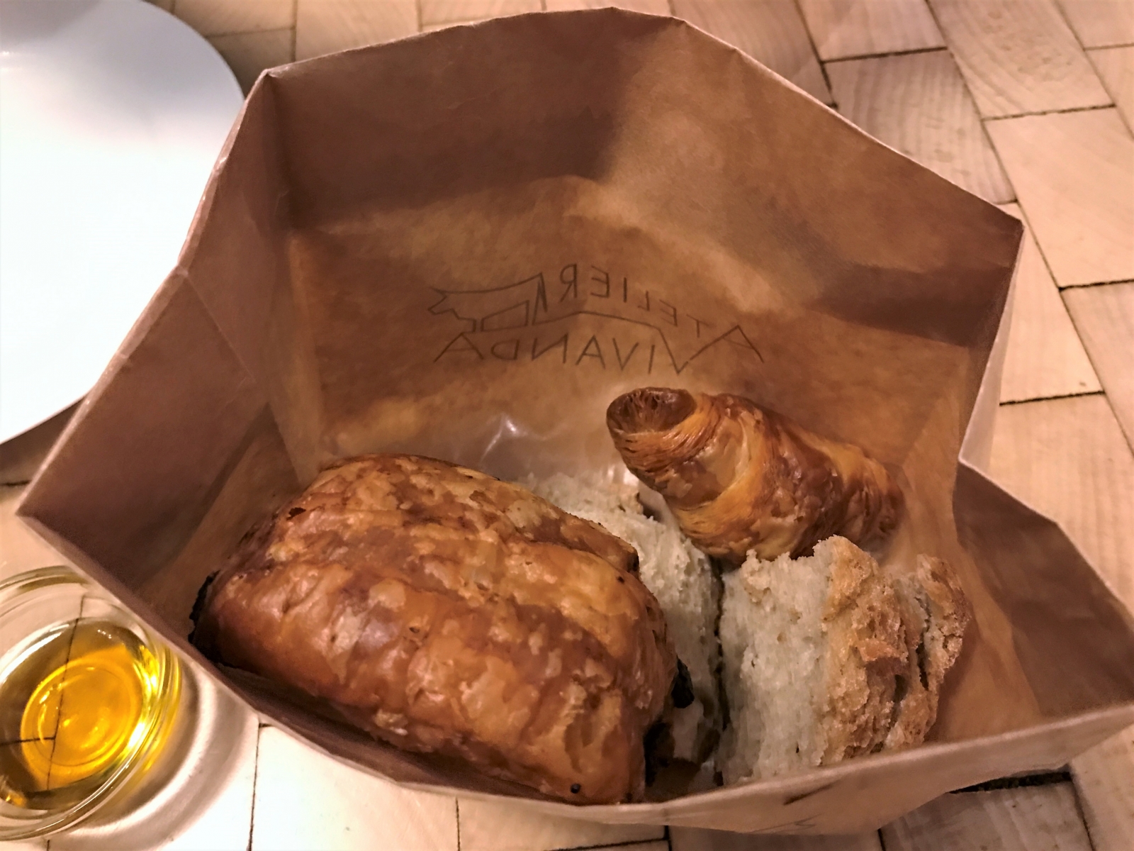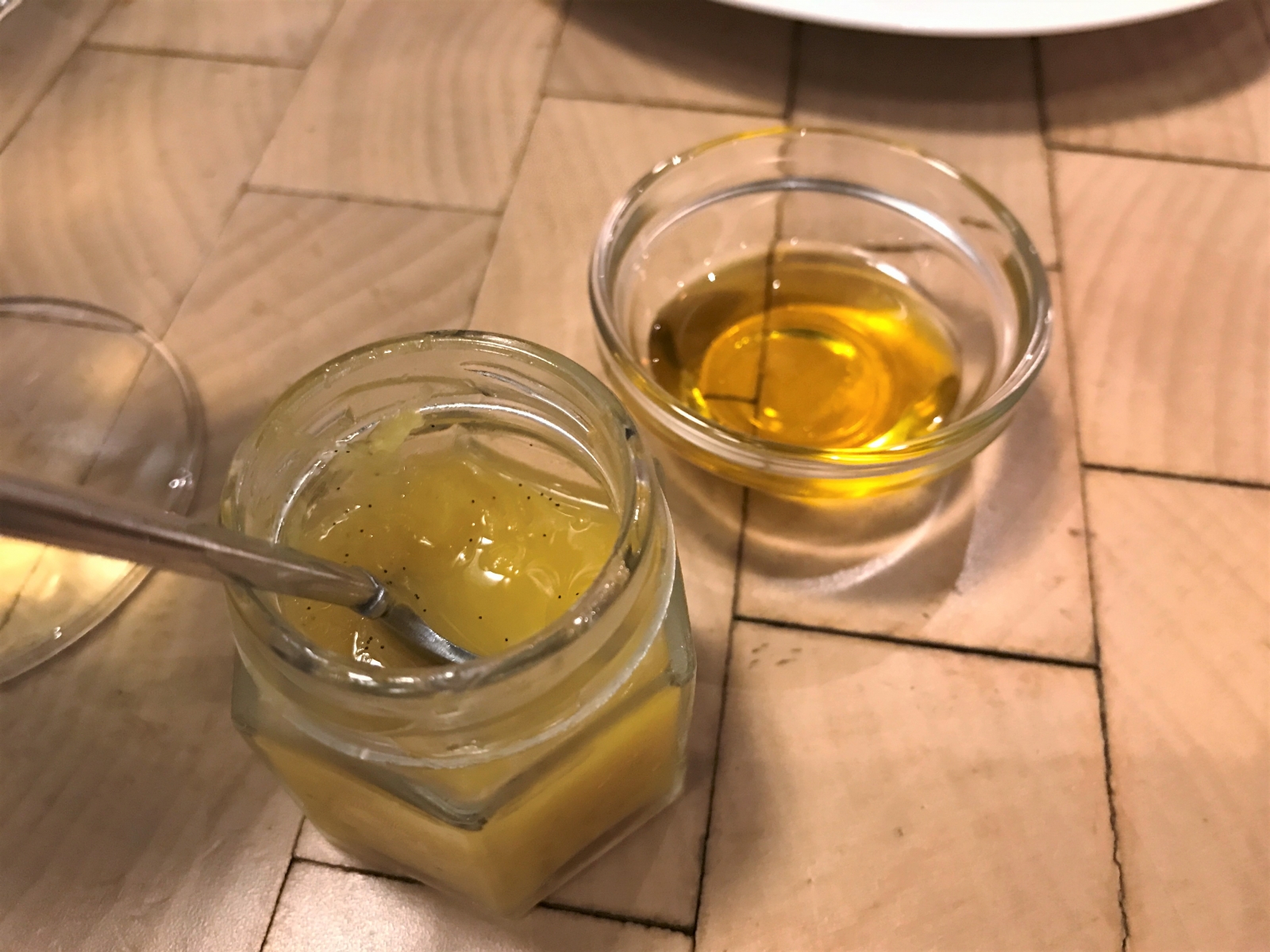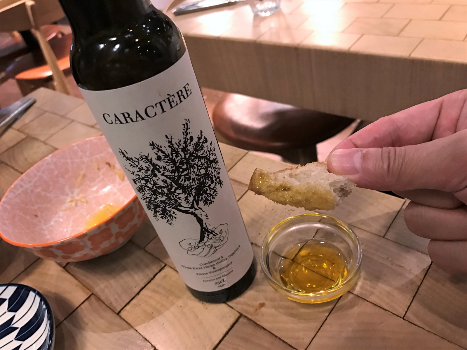橄欖油微辣惹味,原來是混入了黑胡椒,是Akrame的自家出品。