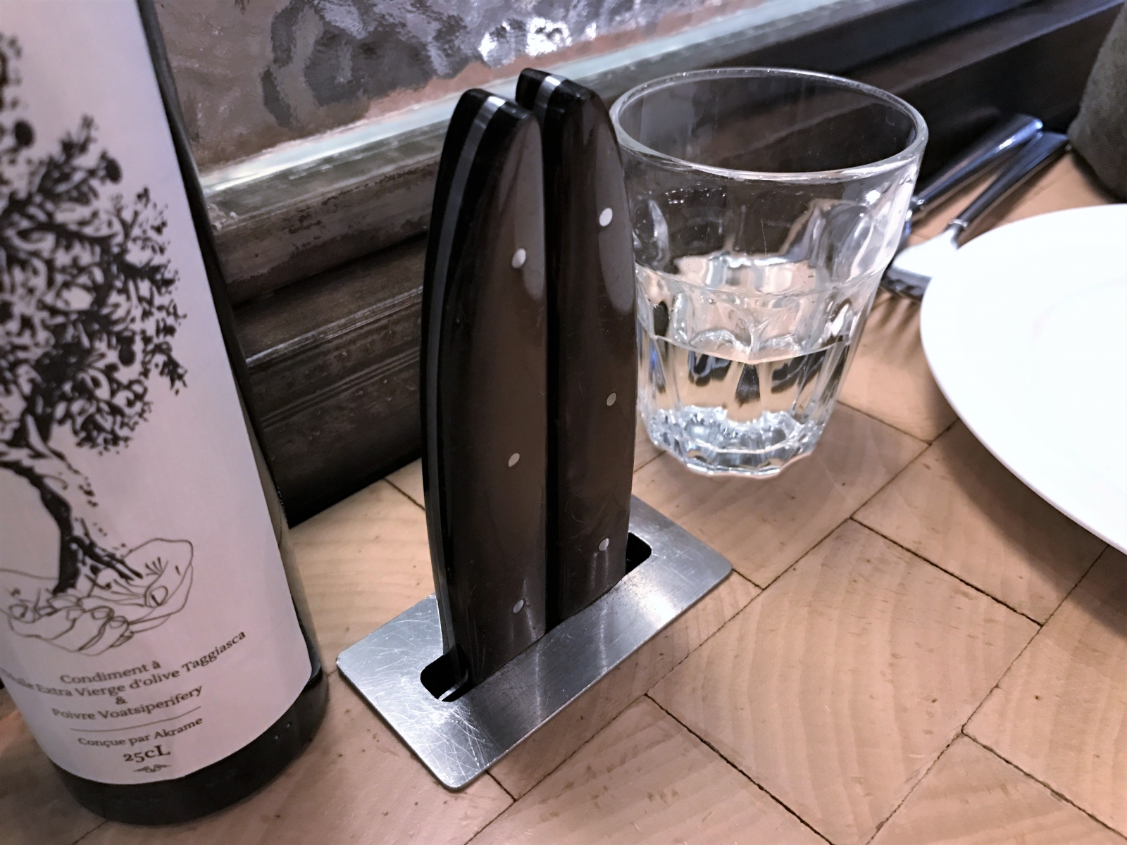牛扒刀直接插在餐桌,挺有趣的佈置。