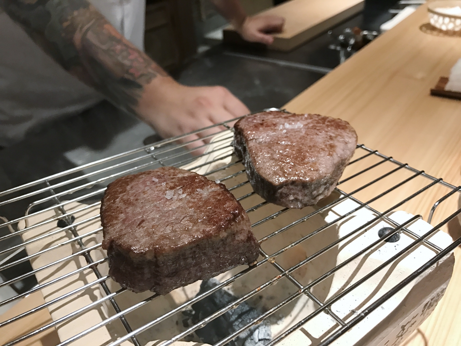 大廚把鹿兒島和牛煎好,再稍作煙燻。