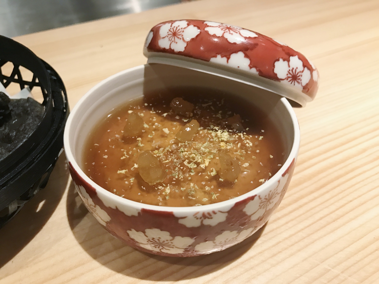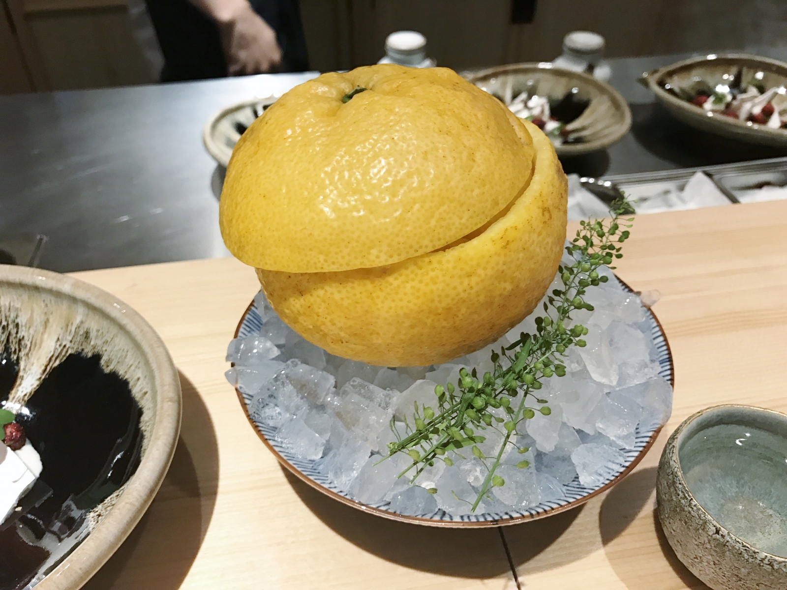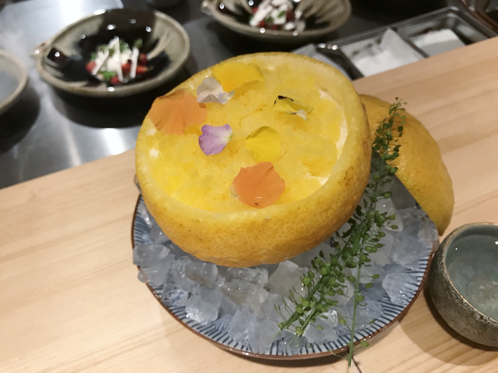 大廚用上青蘋果、柚子和山椒葉做成刨冰,感覺清新又帶點微辣刺激,非常好吃!