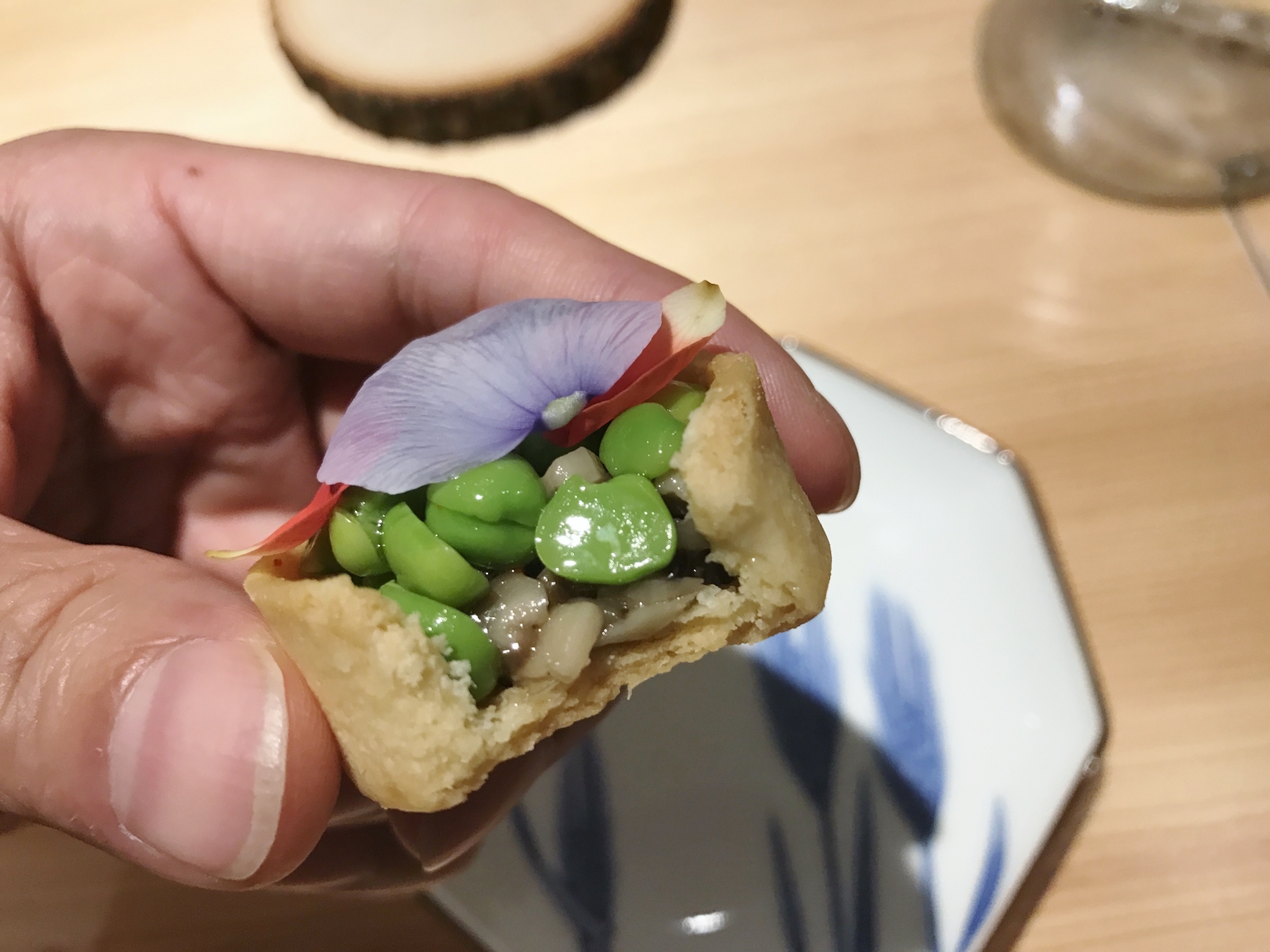 蜆肉鮮甜帶咬口,隨後慢慢滲出一陣微辣,原來是山椒葉,好吃!