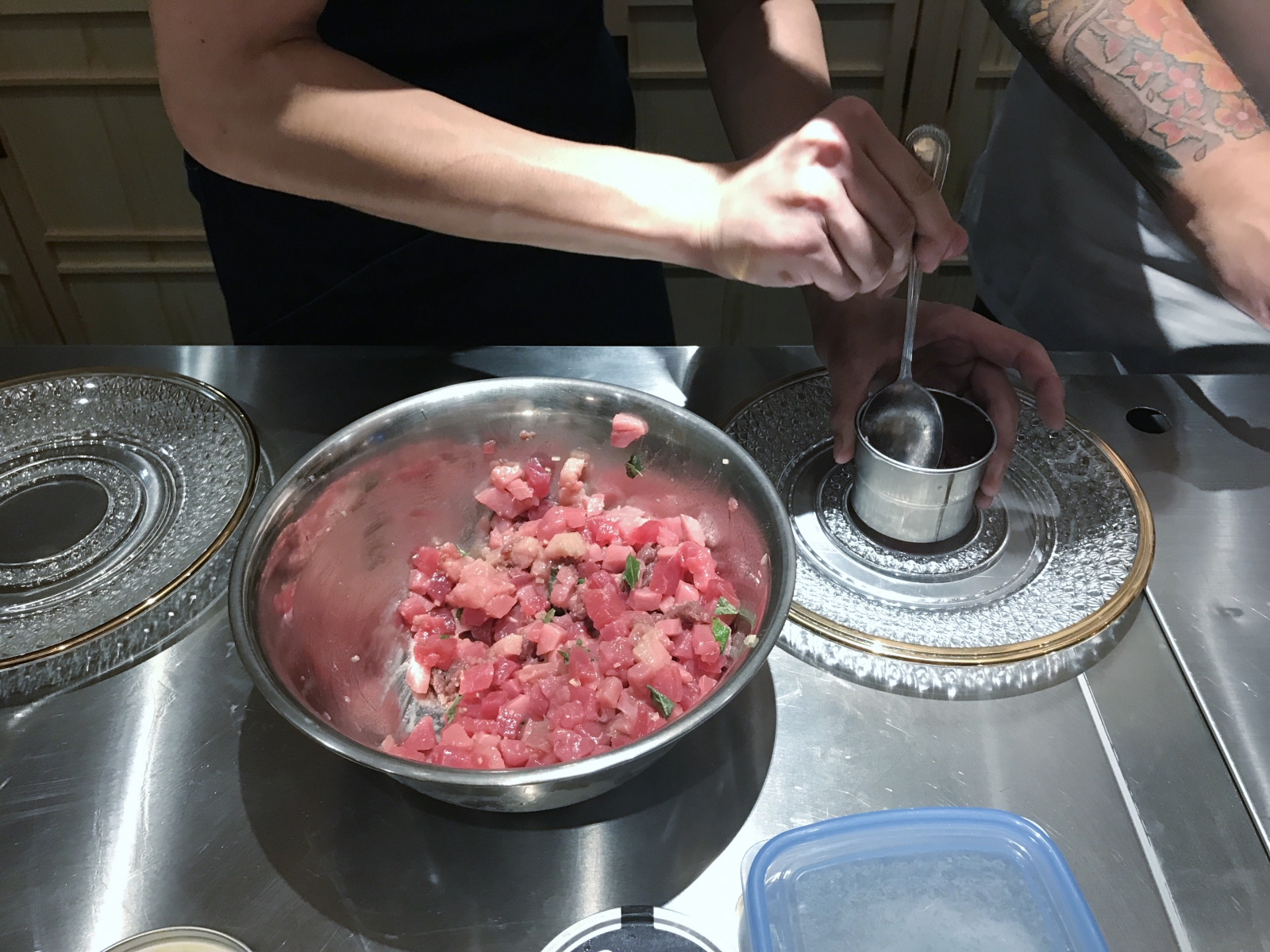 入口溶化的中拖羅,油脂甘香;肉味濃郁的生牛肉他他,增加了口感。
