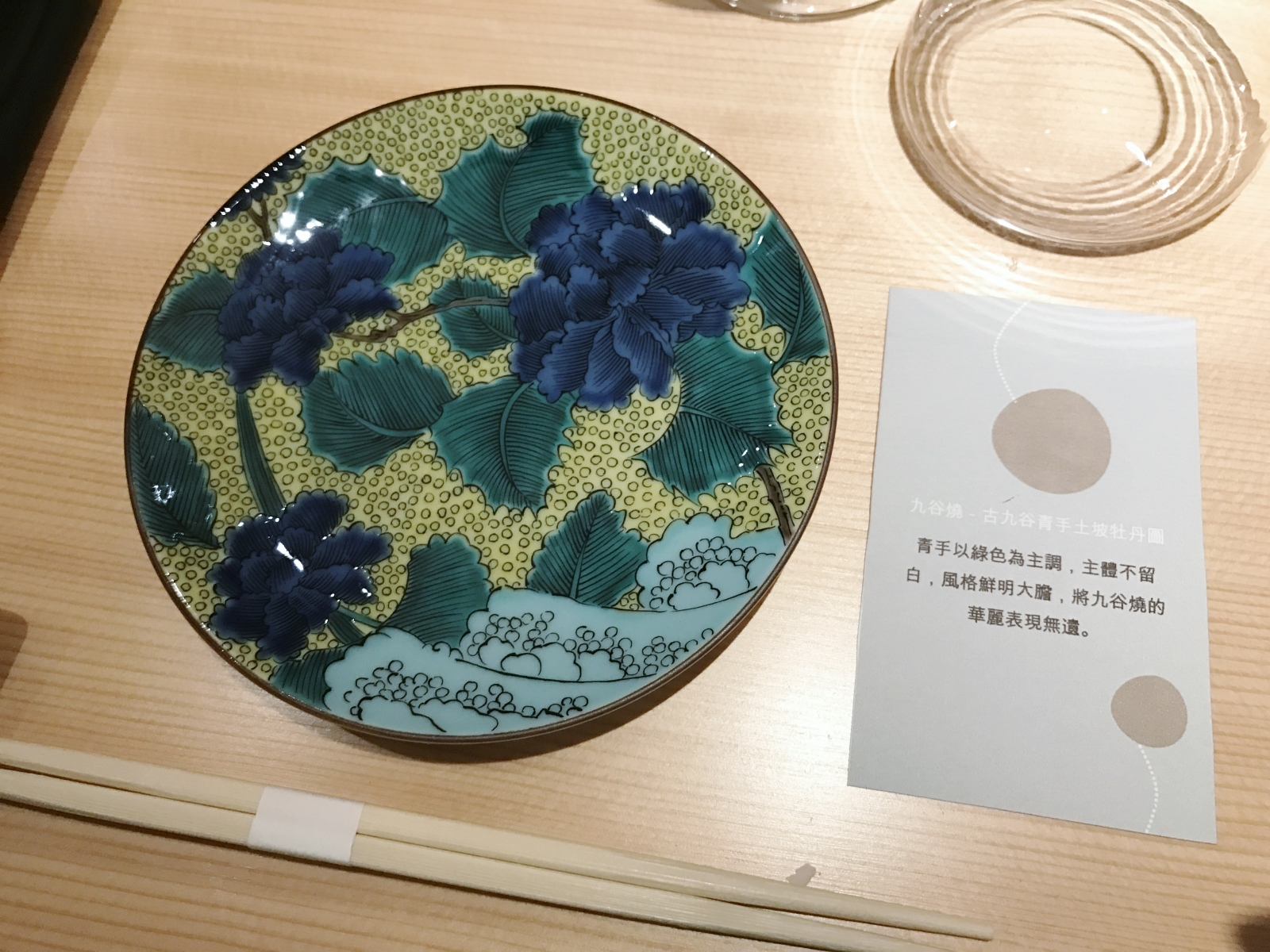 青手以綠色為主調,主體不留白,風格鮮明大膽,將九谷燒的華麗表現無遺。