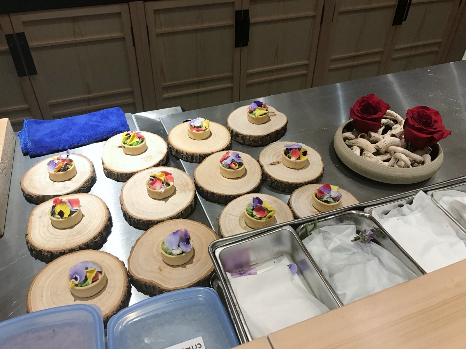 小小的一口野菌撻,用上食用花瓣裝飾,色彩鮮艷!