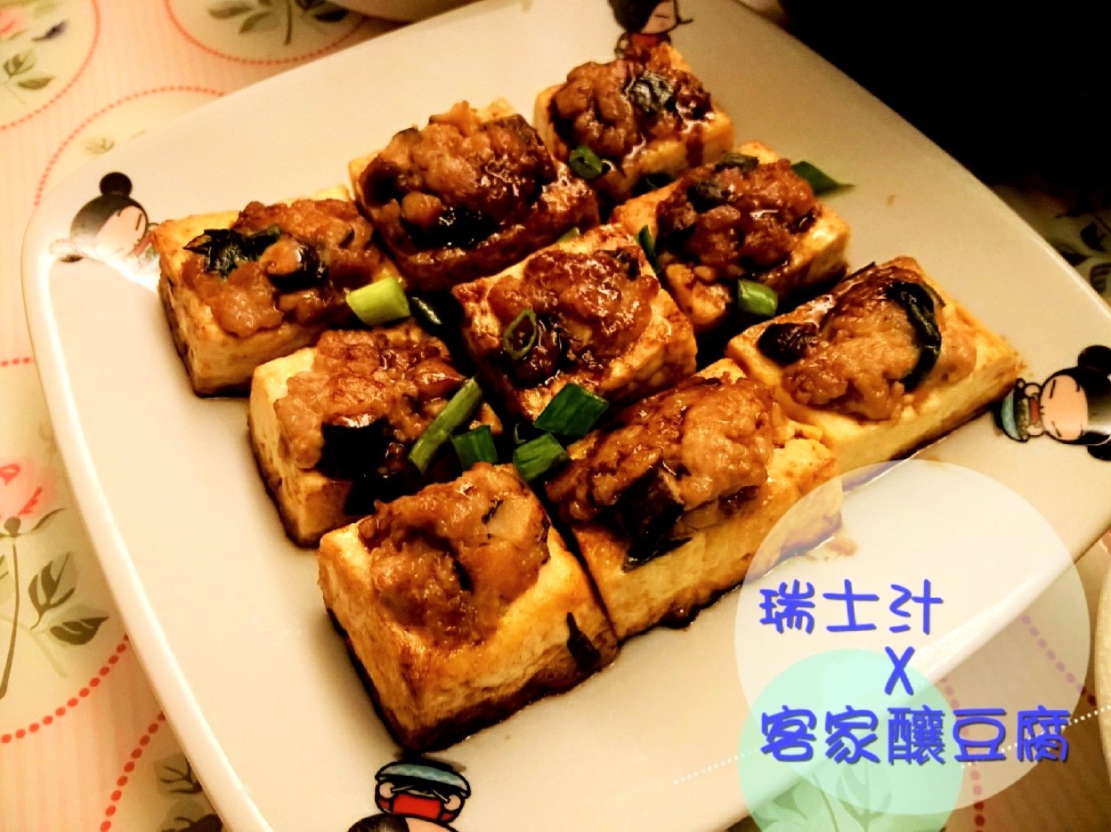 客家饟豆腐是客家的名菜,材料和做法都很多樣化,材料除了半肥瘦豬肉外,還可以加入魚肉、蝦膠、冬菜、冬菇、蝦米等,而做法可以乾煎,清蒸和紅燒。
