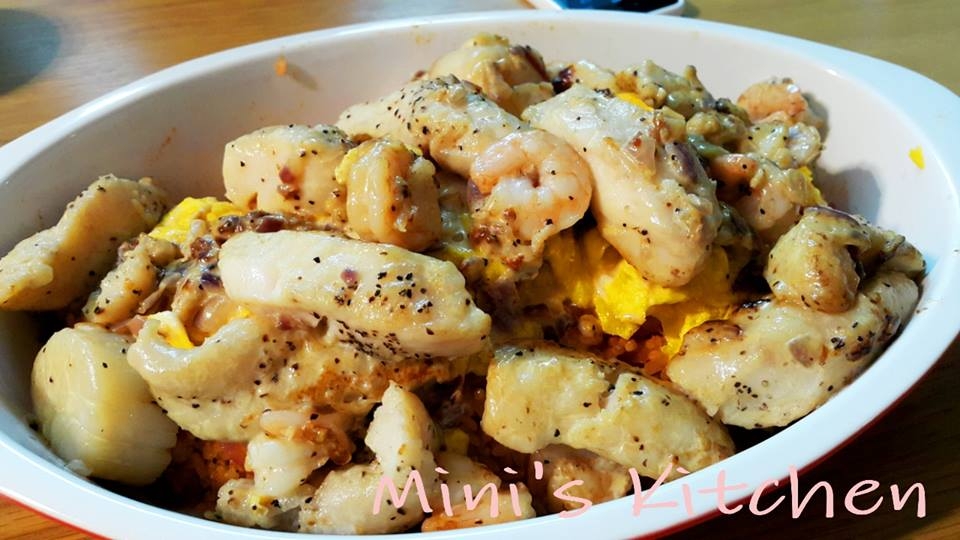 之前有人問白汁海鮮奄列飯食譜,终於完成啦! 材料 煙肉(切小片) 洋蒽 (切碎 ) 牛油 1茶匙 白飯 2杯 茄汁 2湯匙 蛋 4隻 蝦仁 10隻 龍脷柳 一條 带子 4粒 白酒 1/3杯 忌廉 1/3杯 鹽,黑椒 少許 做法 1. 備一鍋,放入煙肉炒一 炒,炒到油分出來再加入洋蒽, 將洋葱煎炒到變透明 2.再加入一點牛油·,溶化後,放入白... 看全文 -