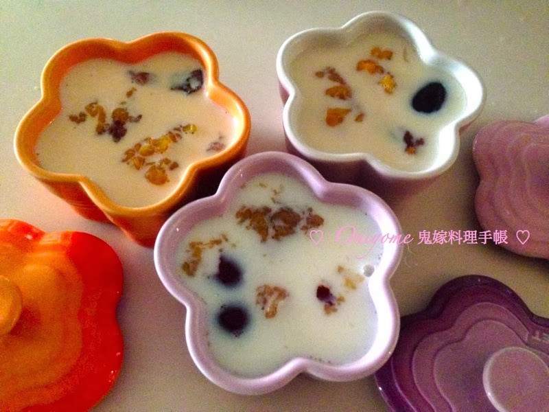 1) 牛奶加水,比例3:1,便不會在燉的過程中凝結,出現奶塊,亦不可用高鈣奶