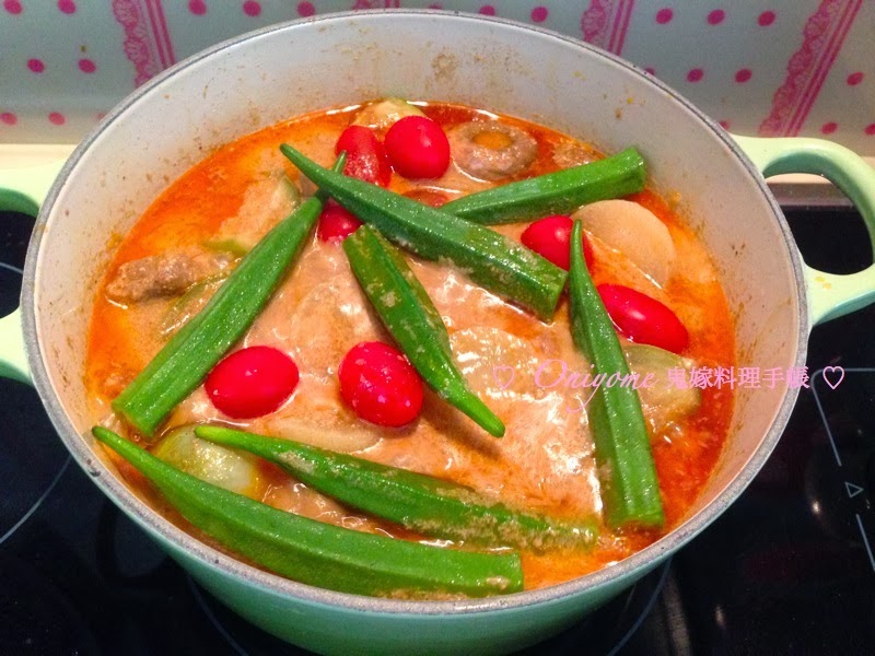 8) 最後加入車厘茄和秋葵, 中火煮1分鐘