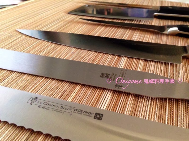每一把刀都有藍帶的標記,WUSTHOF 在香港可能較少人認識,是專業廚師刀(我指專業的廚師在廚房用啊!)用了幾天,非常好用,手感比孖人好多了,感覺鋼水非常足,新刀太鋒利,我用得非常小心,希望慢慢跟它們熟絡,不流一滴血,可以用到得心應手。