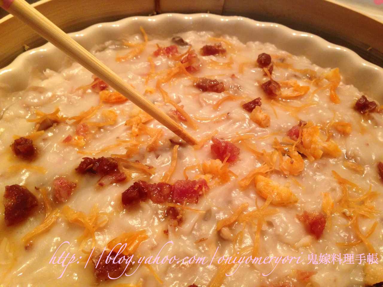 11) 中大火隔水蒸1.5小時,以筷子刺中心點,如沒黏上粉漿便成