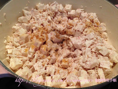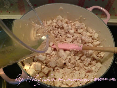 4) 盛起材料備用,原鍋加入芋頭和所有調味料,炒5分鐘