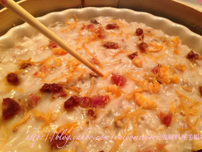 7) 也可以留起1/4臘味放糕面蒸,感覺會豐富一點