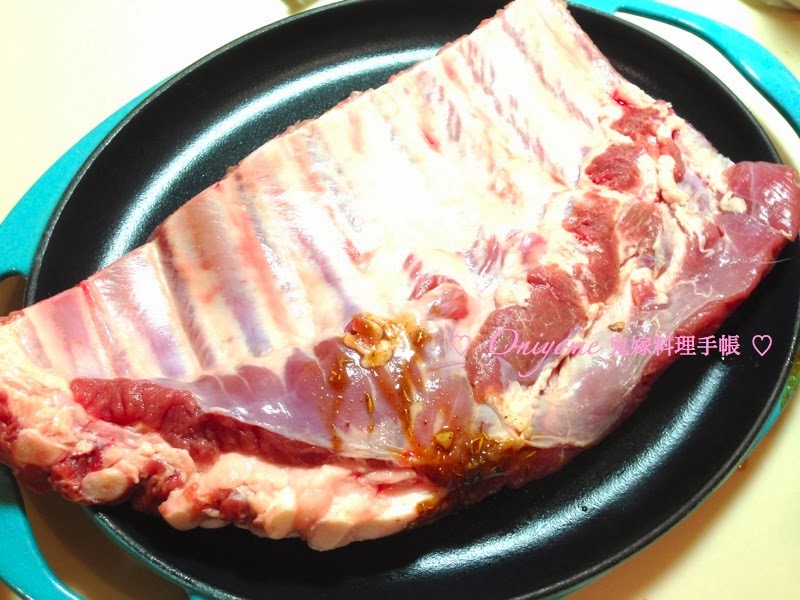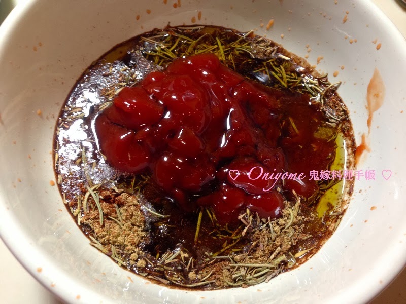 4) 預熱焗爐 250 度,留起 1/5醃汁,肉排連汁入焗爐160度焗1小時