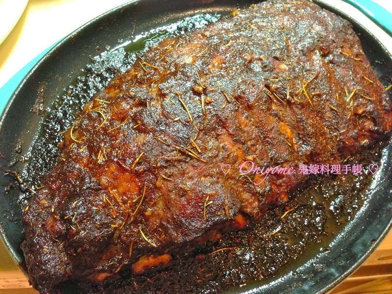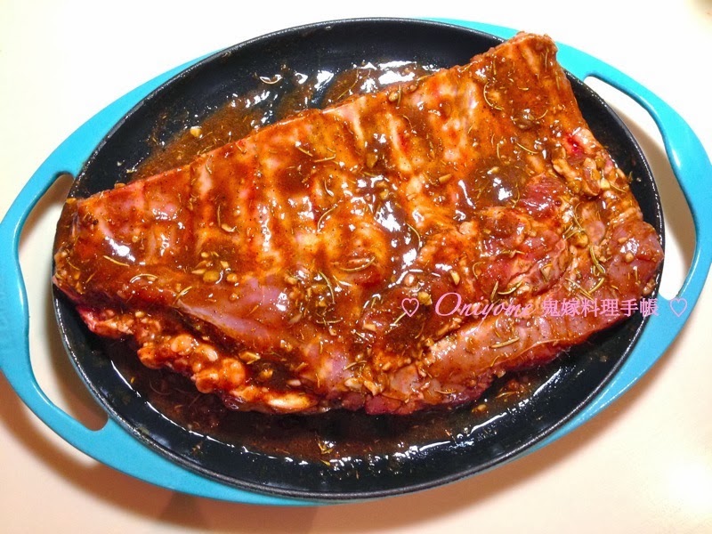 用現成醬汁來烤豬仔骨雖然方便,但總是欠一點風味,所以有時間我會自己配香料來烤,更惹味更香濃,更有層次感,以低溫來烤,時間會長一點但肉嫩多汁,不會像街外吃的又乾又硬。醬料最少醃4小時,過夜也可以,做派對菜式好看好味又飽肚,預早一天醃好,放入焗爐慢烤2小時就有得吃啦! 同一個調味用來醃金沙骨來BBQ一樣好味道! 用橙和陣醋,不但香更能中和肥膩的感覺,多吃也不覺飽滯呢~