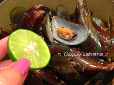 因為這道菜味道較濃,所以用已熟的半殼青口也可以,當然用活青口更鮮味,但活青口比較貴,常吃會破產耶! 泰國的活青口很便宜,1kg 只是110