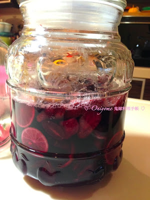 (一層一層的放,先生果,然後青檸,最後冰糖)