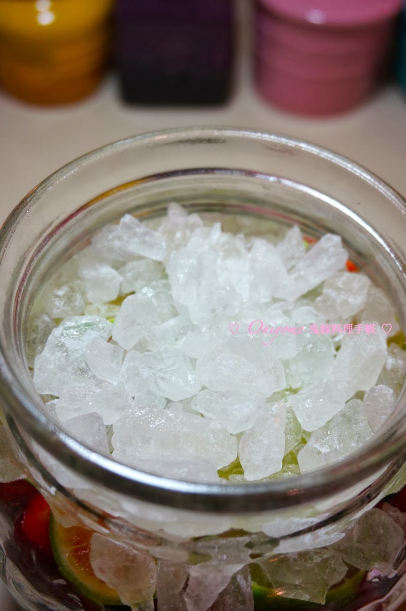 (一層一層的放,先生果,然後青檸,最後冰糖)