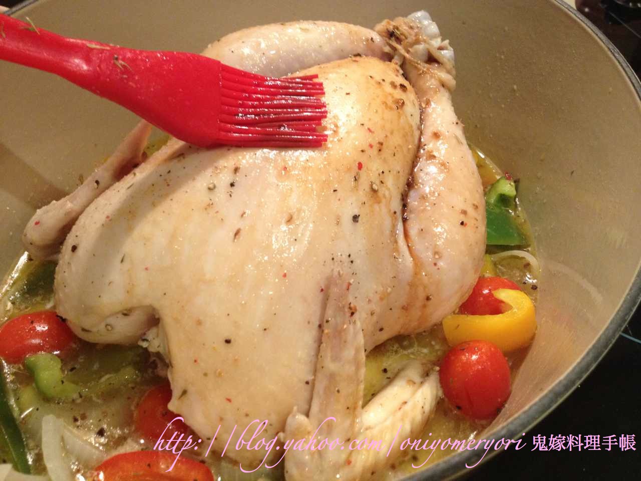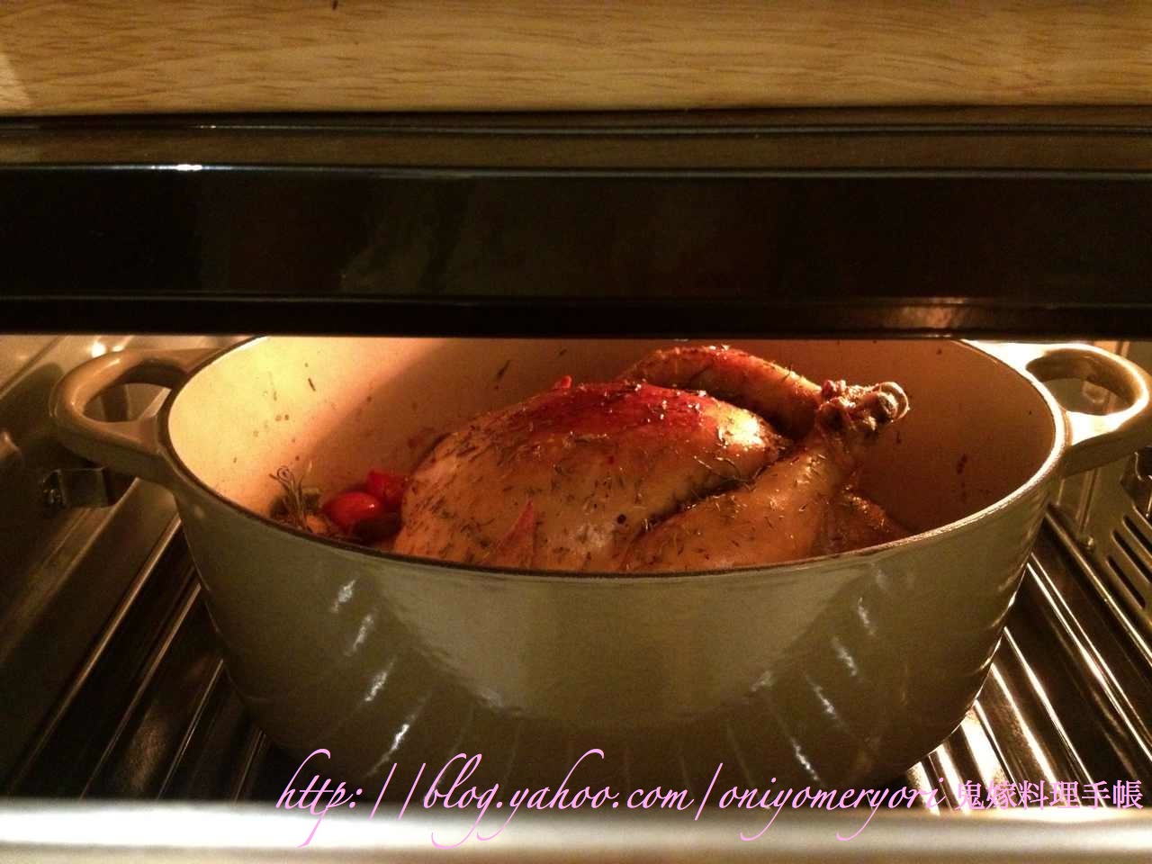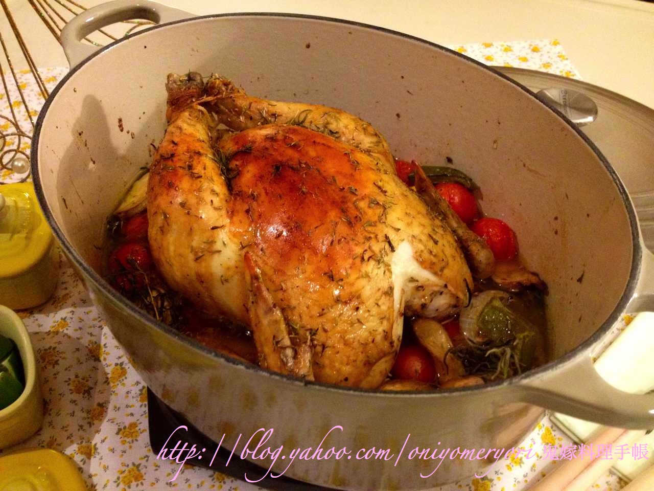 聖誕大餐少不得烤雞,大家不妨試試這先炆後焗的方法,好吃美觀又特別呢~ 當然用能入焗爐的鍋子,如LC, Staub 最好,如沒有,先炆再搬到焗盤去焗也可以。今次用1.5 kg 重的大雞, 相公一個人吃了大半隻(太多了吧!)飽到撐喔!