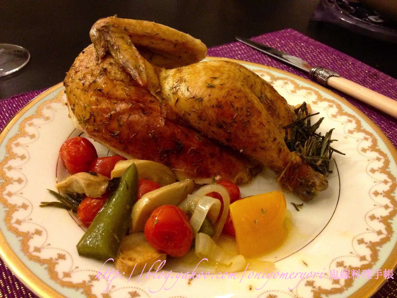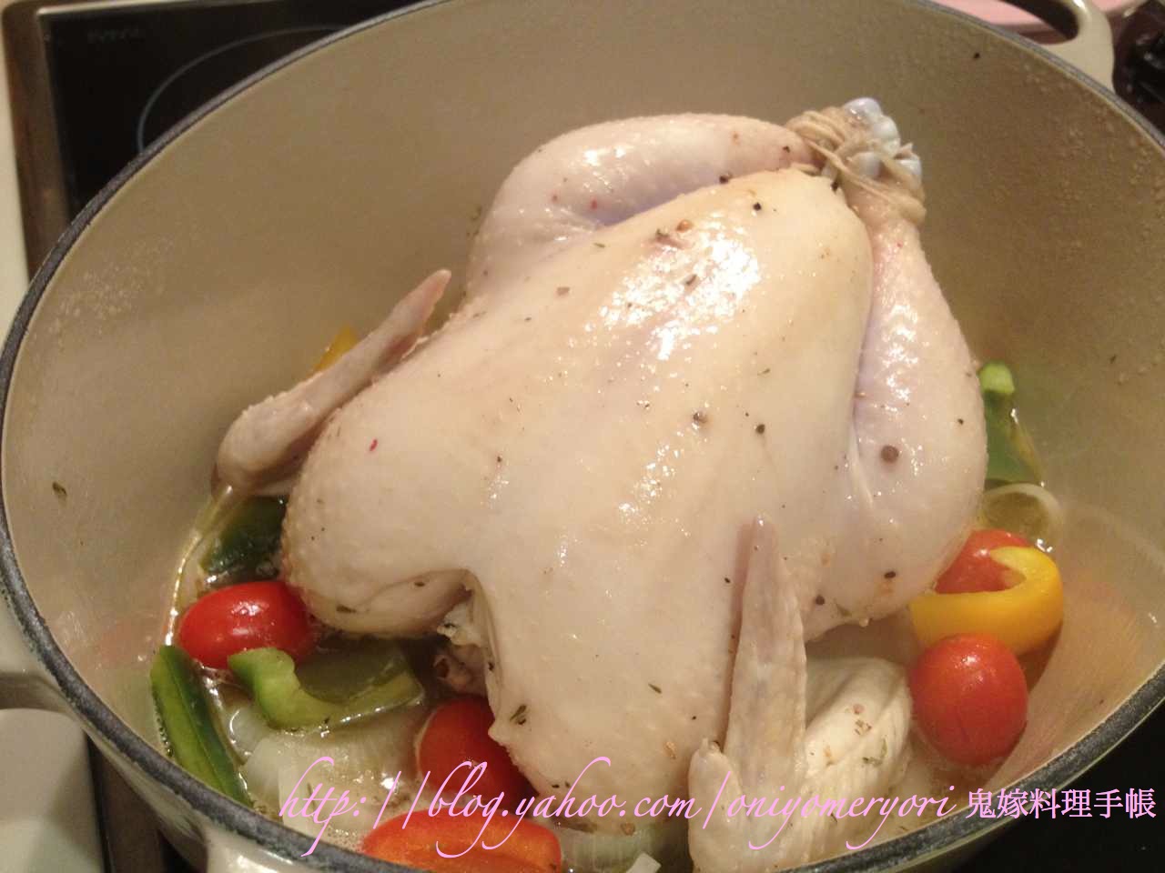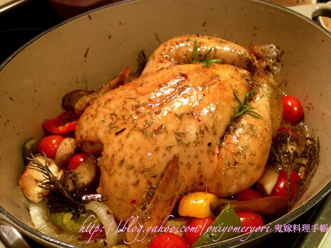 聖誕大餐少不得烤雞,大家不妨試試這先炆後焗的方法,好吃美觀又特別呢~ 當然用能入焗爐的鍋子,如LC, Staub 最好,如沒有,先炆再搬到焗盤去焗也可以。今次用1.5 kg 重的大雞, 相公一個人吃了大半隻(太多了吧!)飽到撐喔!
