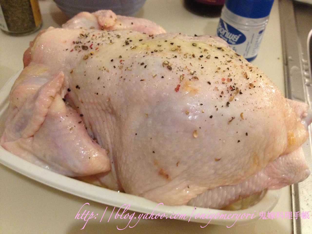 1) 雞洗淨內外,用廚房紙抹乾,牛油煮溶備用