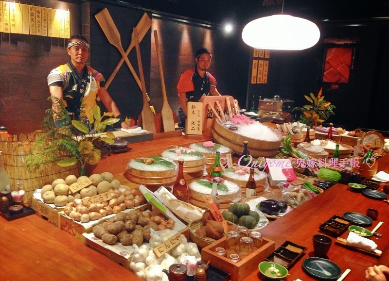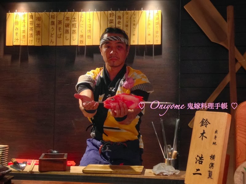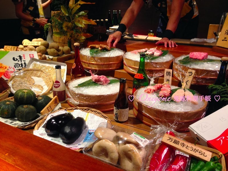 進門即被長長的食材大檯吸引了!但不要失神喔!因為店員們會一起大聲用日語來歡迎你!非常有氣魄!