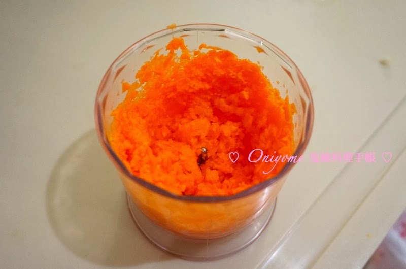 1) 洋蔥和甘荀切粒,我用機打,超快!