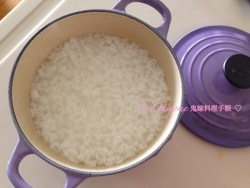 米洗好,加入熱水,不用加蓋,入蒸爐 100度蒸 45分鐘