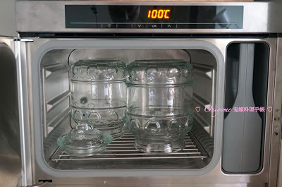 玻璃樽以熱水煮約15分鐘消毒,我用蒸爐 100度蒸了 15分鐘 (超爽超方便)