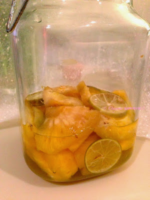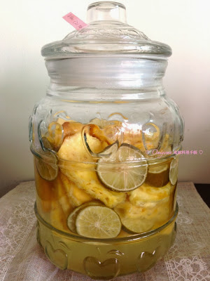 鬼嫁很久以前,在香港時已浸過幾樽,但消毒工作太麻煩(最重要是懶!),停工了! 哈哈!  最近有了蒸爐,消毒工作變簡單了,又開始再整,現在正製作第4樽,感覺良好,很多朋友仔喝了都覺皮膚變好了,去大時也腸通了~ 我要繼續努力,不偷懶,為自己為相公,好好的整下去,喝下去!因為菠蘿比較便宜,所以一直只整青檸菠蘿,