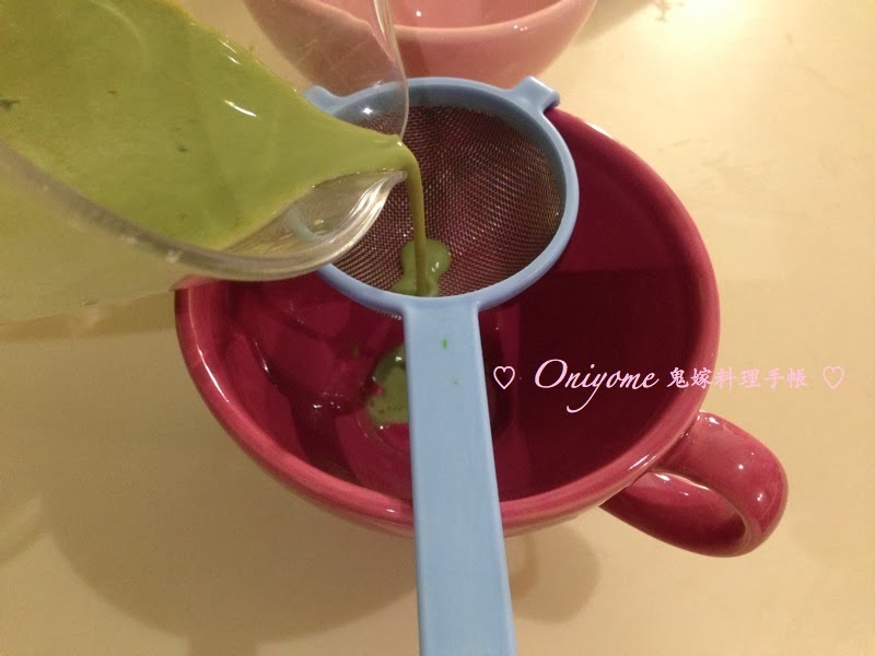5) 過篩兩次,隔去氣泡及溶不掉的粉抹