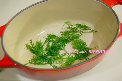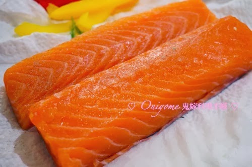 1) 三文魚洗淨抹乾,混和調味醃5分鐘